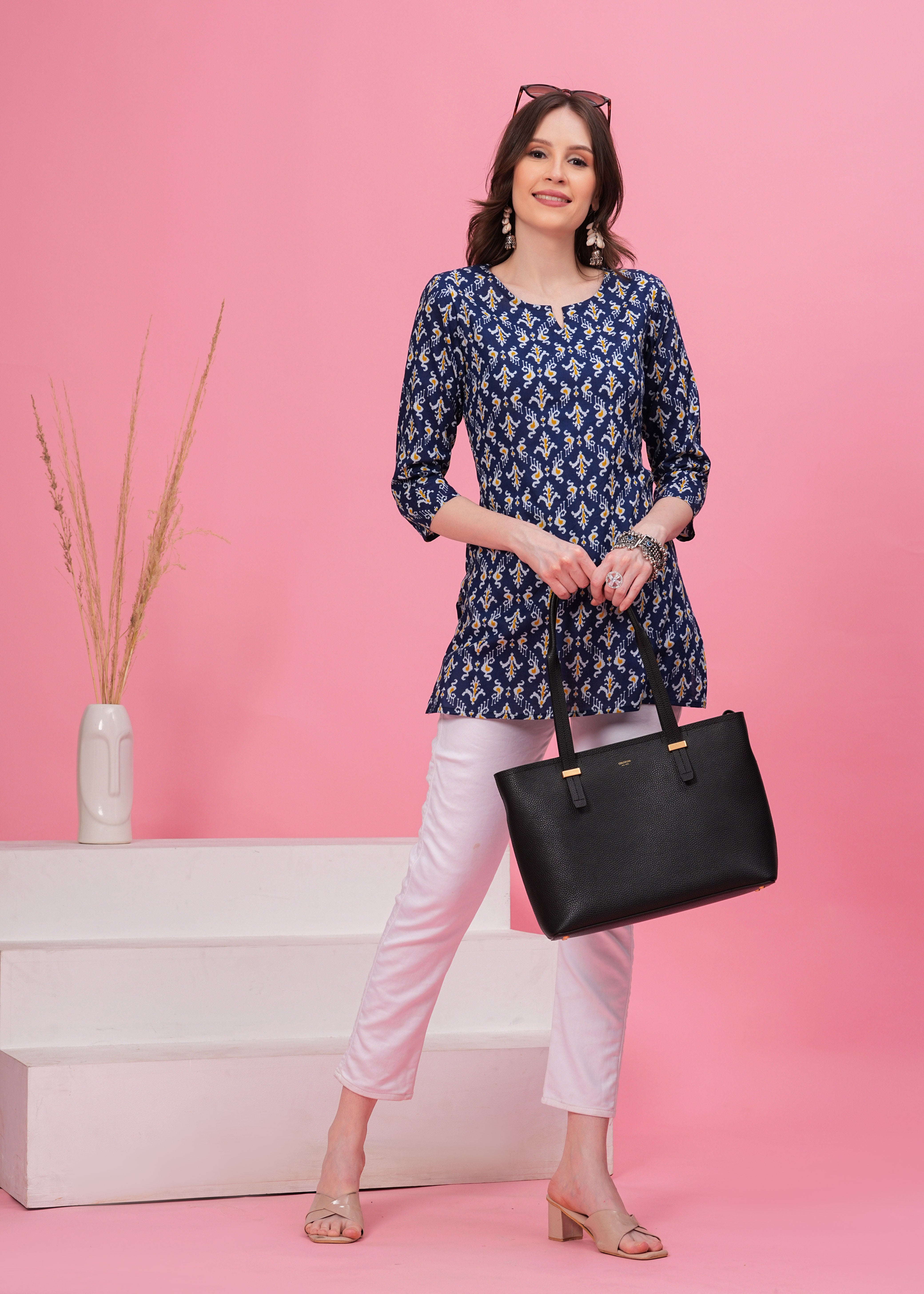 Experience comfort and style with our Kurti. Made with 3/4 sleeves, this short kurti is perfect for both casual and office wear. Elevate your wardrobe with its versatility and effortlessly chic design.