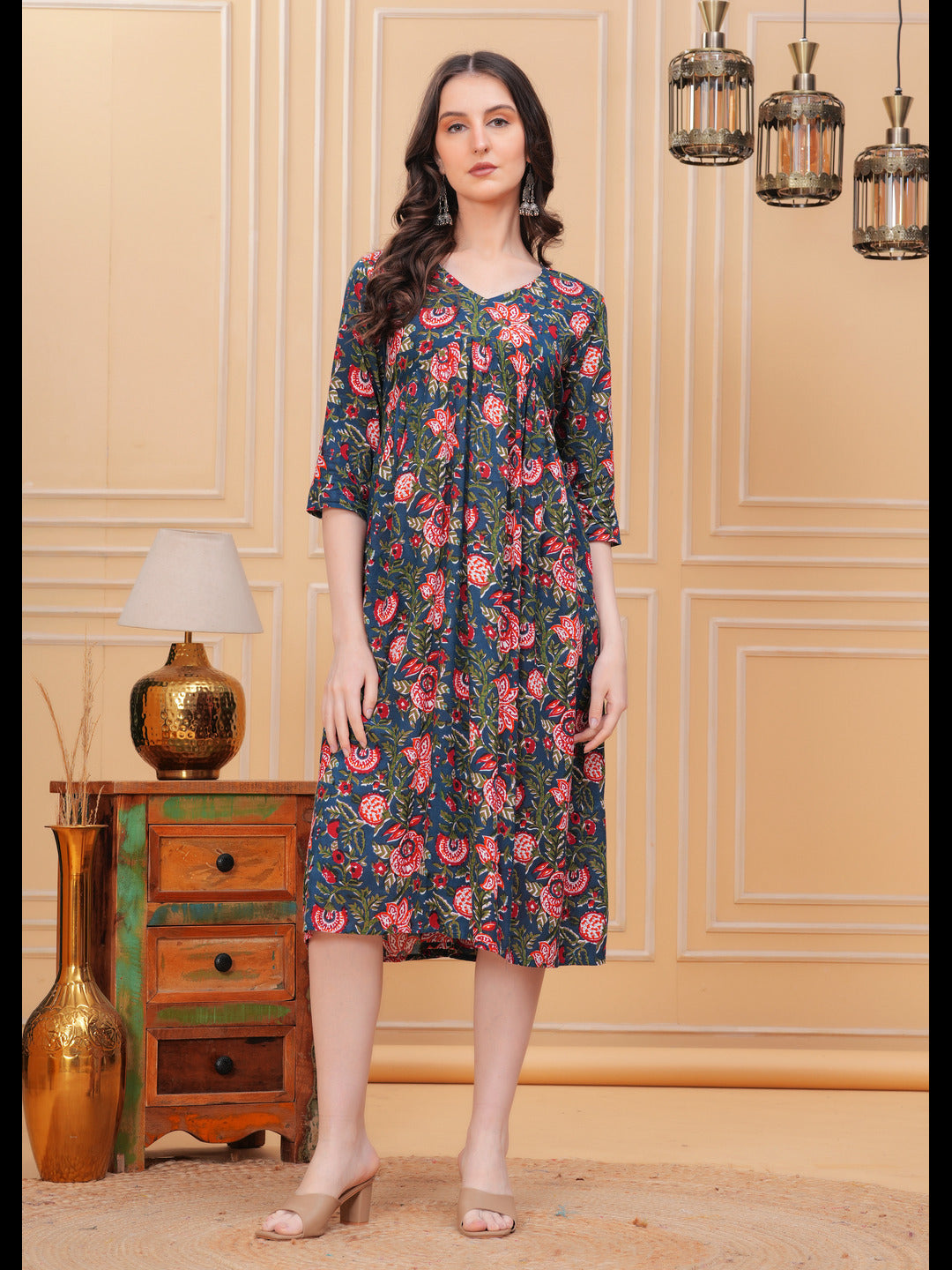 Discover the beauty and comfort of our Aliya-cut Kurti. Made from pure cotton, this flared kurta features a lovely flower print and a flattering v-neck design. Perfect for everyday wear, this Kurti will keep you stylish and comfortable all day long.