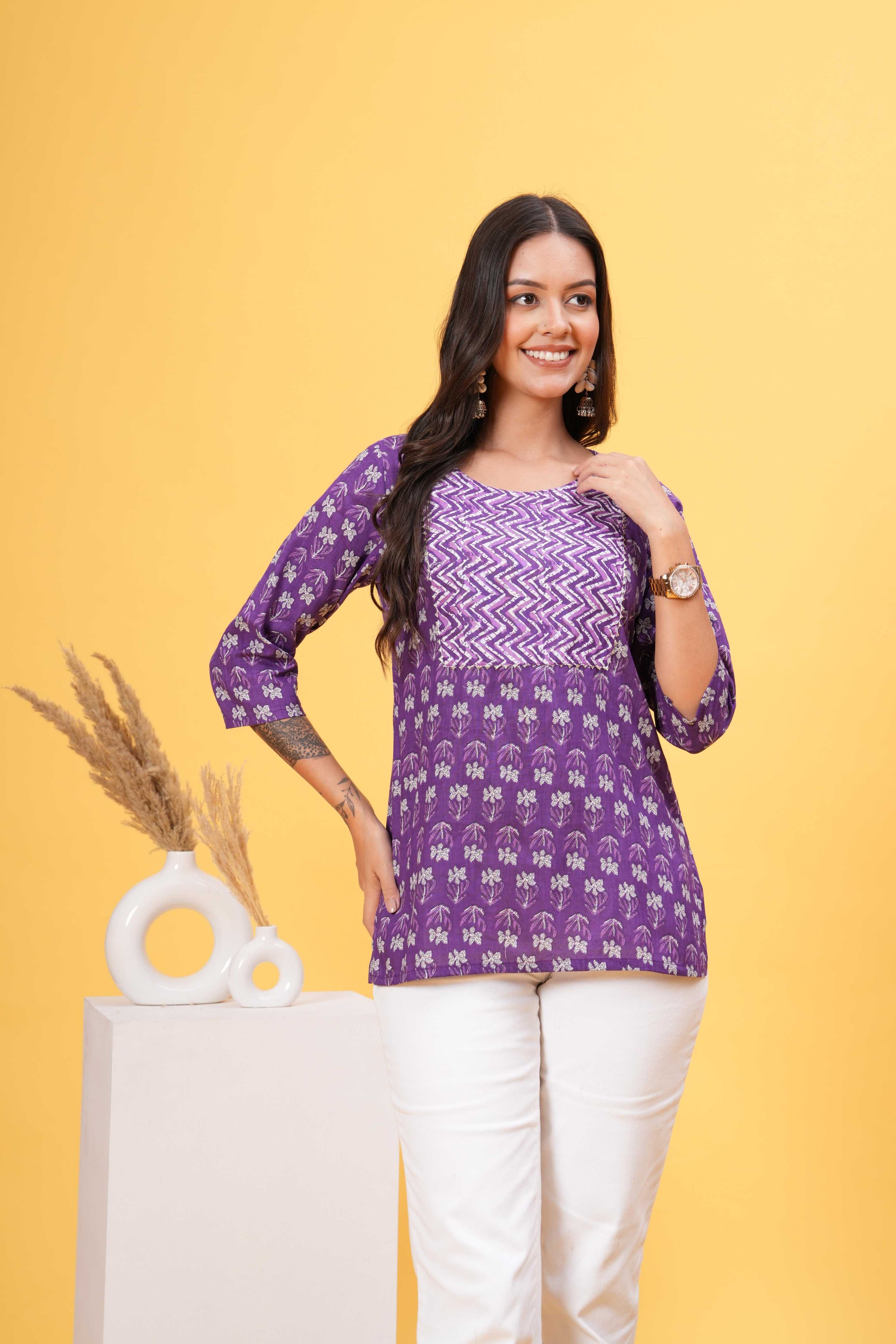 Elevate your everyday style with our Cotton Short Kurti. Featuring a unique yoke design and a vibrant violet color, this kurti is the perfect addition to your wardrobe. Made from high quality cotton, it offers both comfort and style. Upgrade your look with this must-have piece.