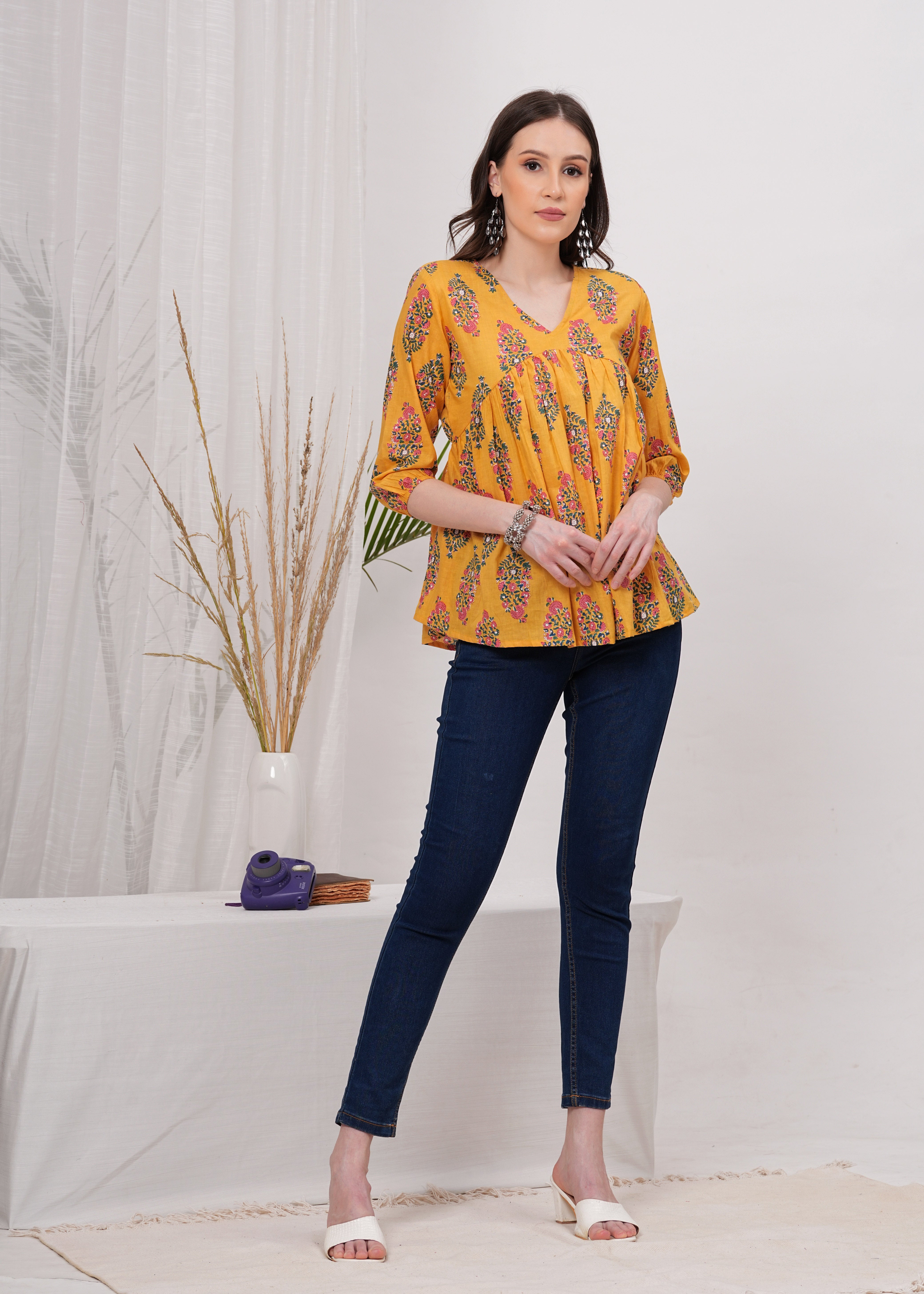 Crafted from 100% cotton fabric, this top offers both comfort and style. The breathable material is perfect for warm weather and the classic design makes it a versatile piece for any wardrobe. Upgrade your wardrobe with this must-have top.