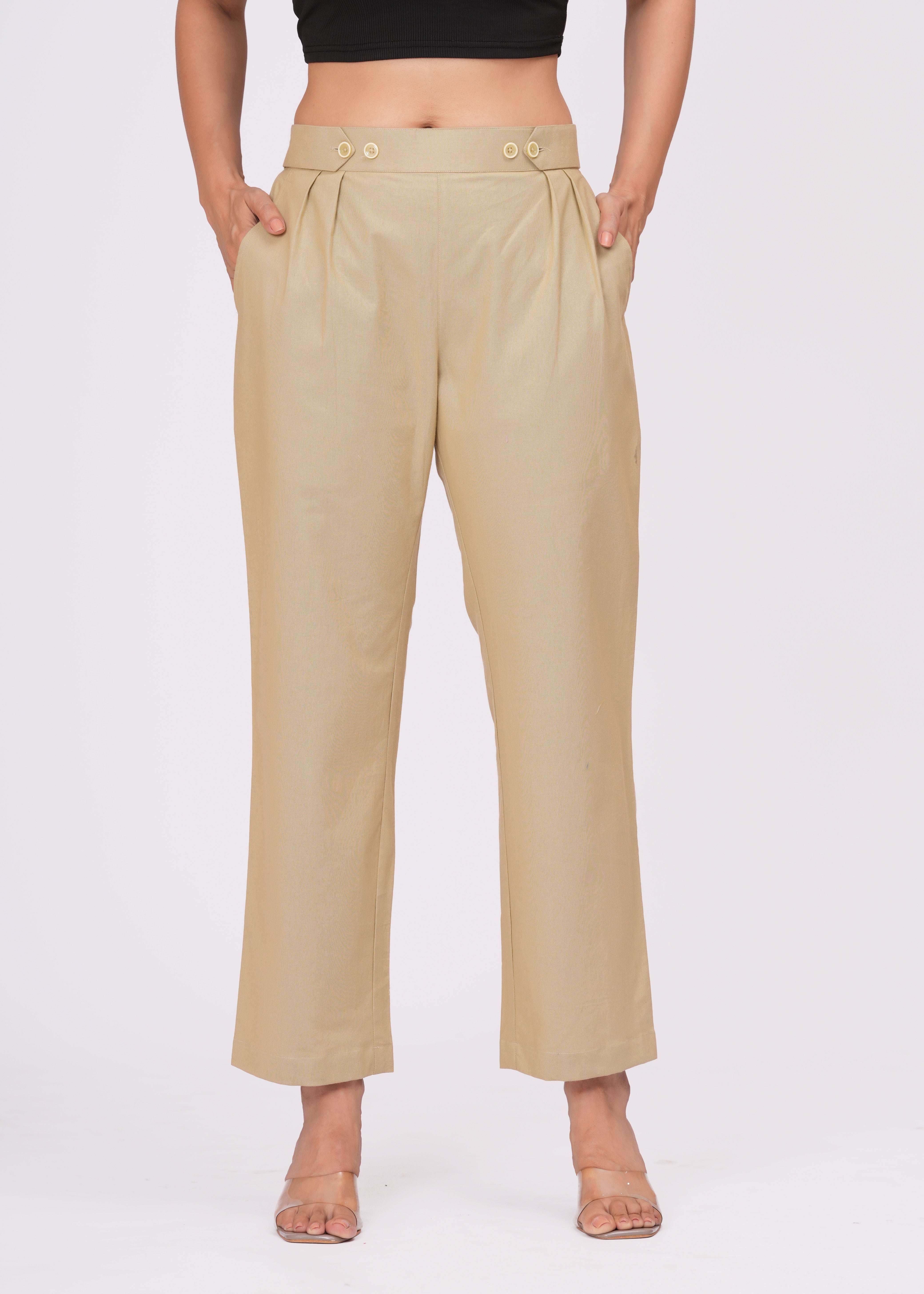 Upgrade your wardrobe with these beige regular fit cotton trousers for women, designed for all-day comfort and timeless appeal. Crafted from breathable and skin-friendly pure cotton fabric, these trousers offer a soft touch and relaxed silhouette, making them perfect for daily wear, work settings, or casual outings. The clean design and neutral beige tone make styling effortless—pair it with kurtas, shirts, or tops for a versatile, polished look.